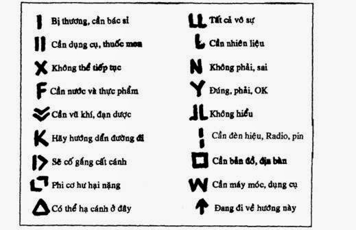Khi phi cơ đã nhìn thấy các bạn, nếu không có máy liên lạc, hãy dùng các thủ hiệu, ám hiệu dưới đây để gửi những thông tin, yêu cầu của bạn.